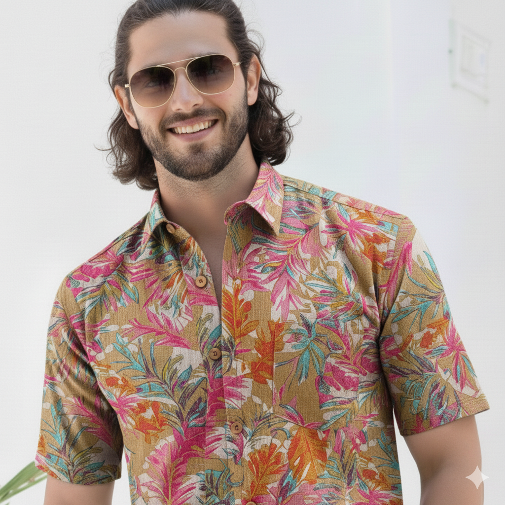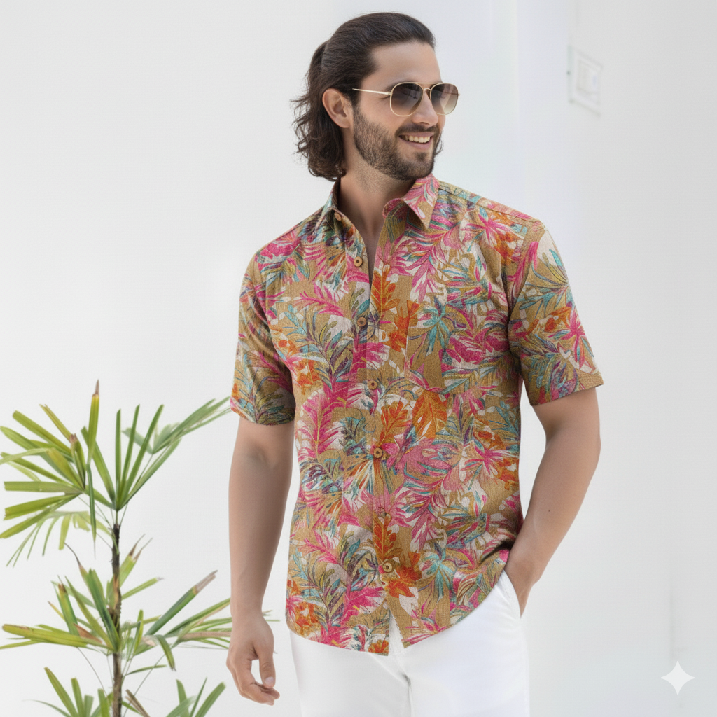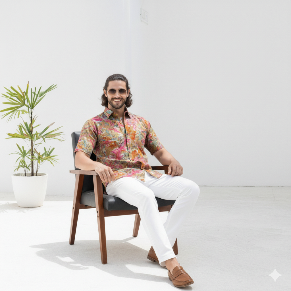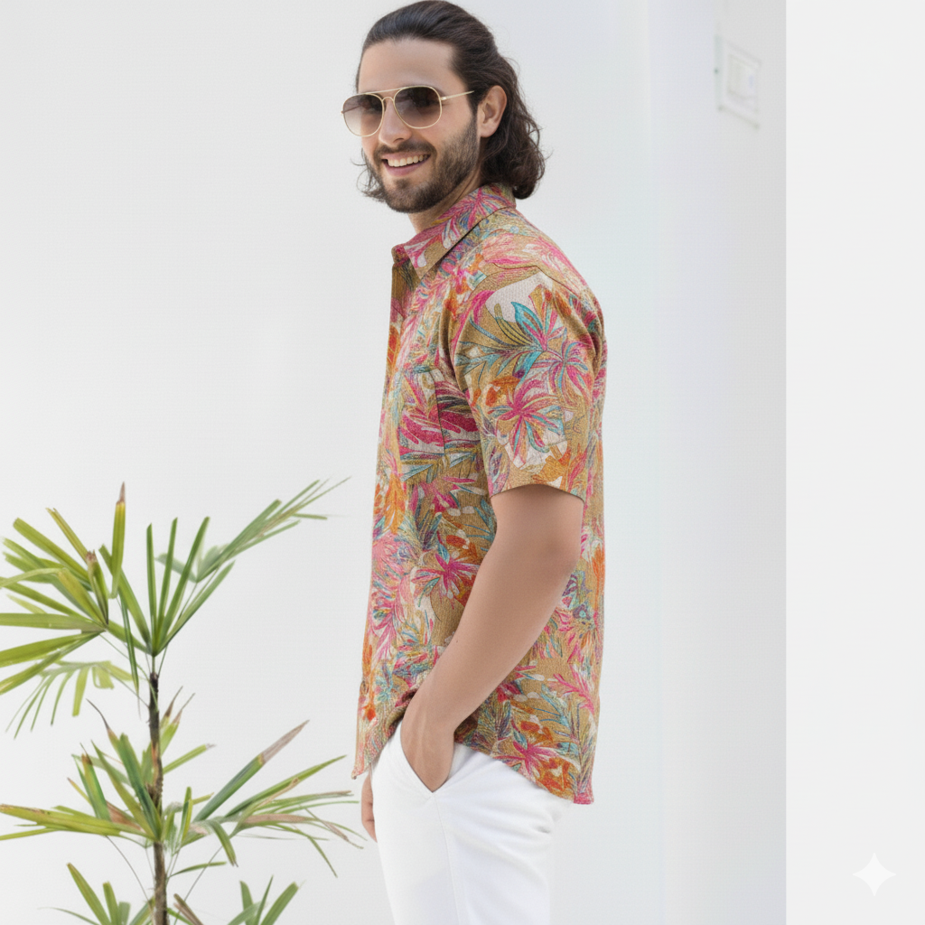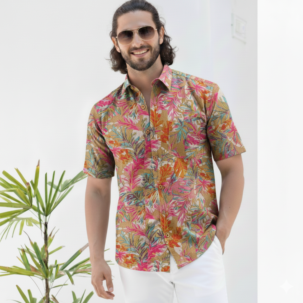 Style Details: Featuring a classic fold-down collar, a single chest pocket, and short sleeves, this regular-fit shirt exudes effortless charm and a distinctive presence. The unique dotted pattern makes it an ideal choice for casual outings, evening gatherings, and unique everyday styling, offering comfort with a modern, artistic touch."